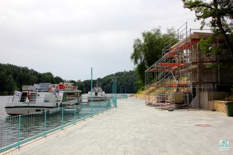 Neben dem Aufzugsgebäude wurde die Uferpromenade sowohl see- als auch landseitig breiter geplant. Sie ist damit wesentlich großzüger als der ursprüngliche schmale Uferstreifen. Weiterhin wurde der Uferbereich mit Wasserbauschotter der Baustraße bis zum Bootssteg aufgefüllt.