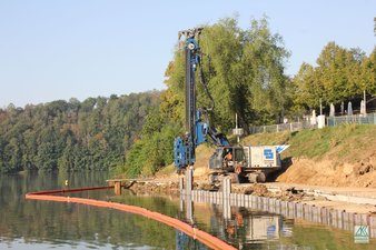 Mit den Voruntersuchungen wurde dann 2017 begonnen. Zuerst war ein Baugrundgutachten erforderlich, um festzustellen, ob die angedachte Erneuerung der Ufermauer als Spundwand möglich ist.